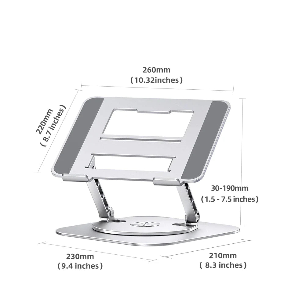 This rotatable stand holder can not only rotate 360 degrees but also adjust the view angle according to your usage habits to satisfy all your desires when using your laptop with this laptop stand on a desk.