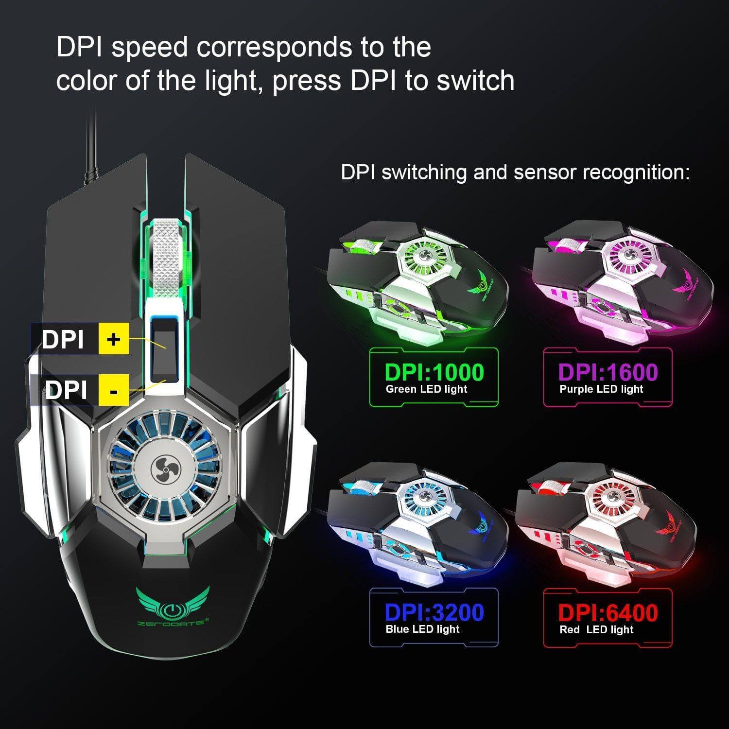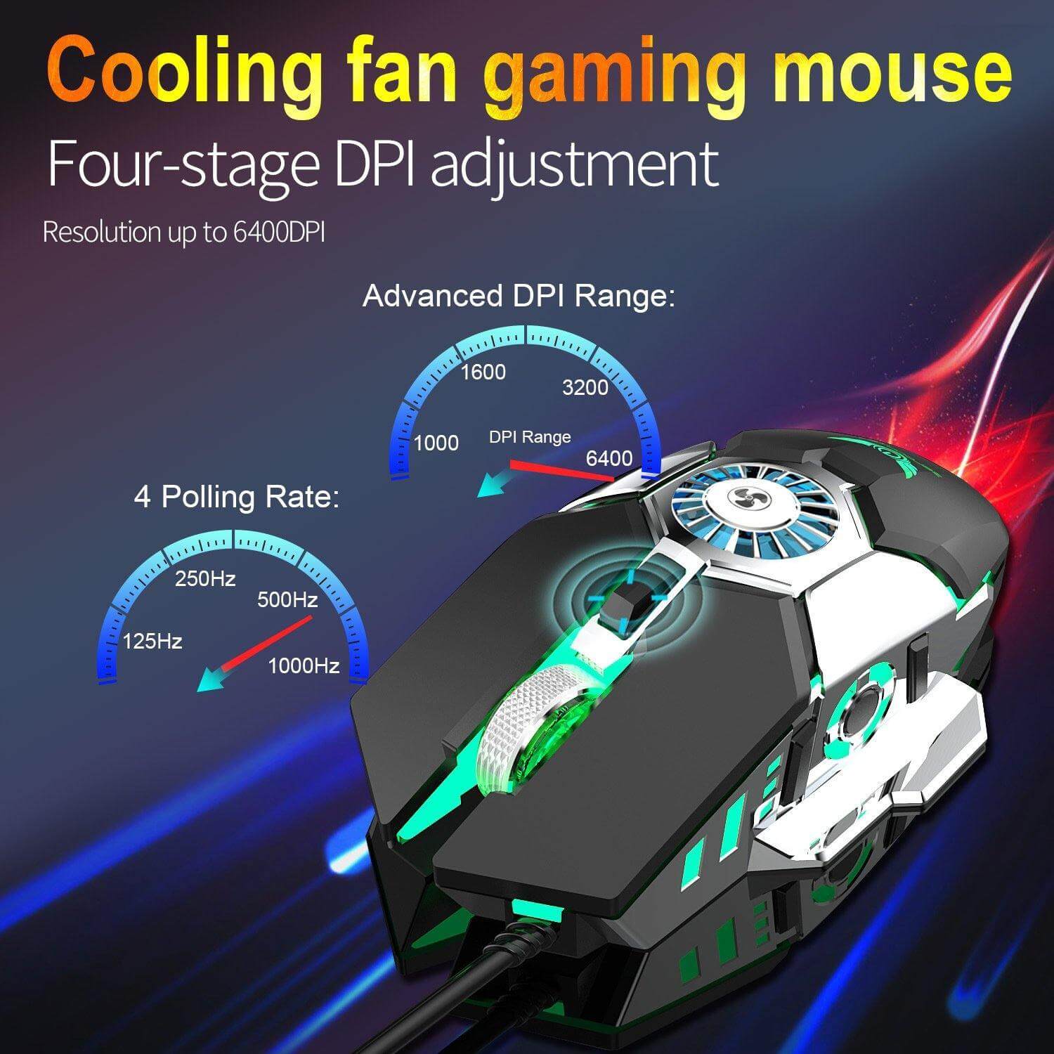 This gaming mouse support four‑level DPI adjustment, the resolution is up to 6400DPI