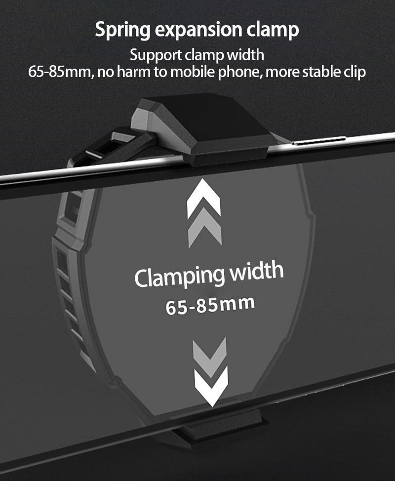- Spring telescopic clamp, support, and clamping width is 65-85mm, will not hurt the phone