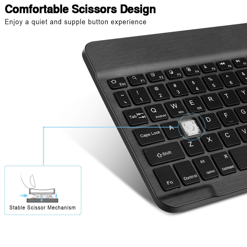 The Portable Bluetooth Keyboard Mouse Set is a convenient and versatile accessory for any computer user. The keyboard and mouse are both designed to be compact and lightweight, making them easy to take with you on the go. The keyboard features a comfortable and ergonomic design with well-spaced keys. The mouse has a precise optical sensor for accurate tracking and connects to your computer via Bluetooth for a seamless, cable-free setup. With its sleek and modern design, this keyboard and mouse set is the perfect addition to any workspace.